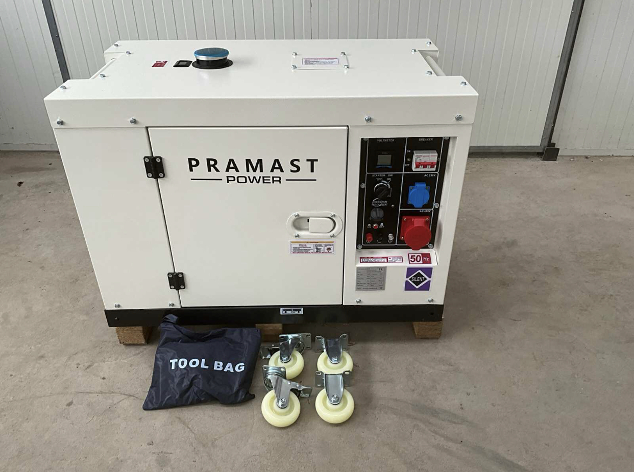 Vendo generatore di corrente Pramast 10 kW diesel super silenziato nuovo mai usato 11 KVA‚ 50Hz‚ 1x presa 220V a 2 poli 1x presa 380V 16A a 5 poli‚ avviamento elettrico‚ ruote mobili fornite separatamente‚ motore diesel a 1 cilindro. fattura con Iva esposta possibile ritiro a Milano senza costi aggiuntivi o consegna a nostra cura in milano e provincia